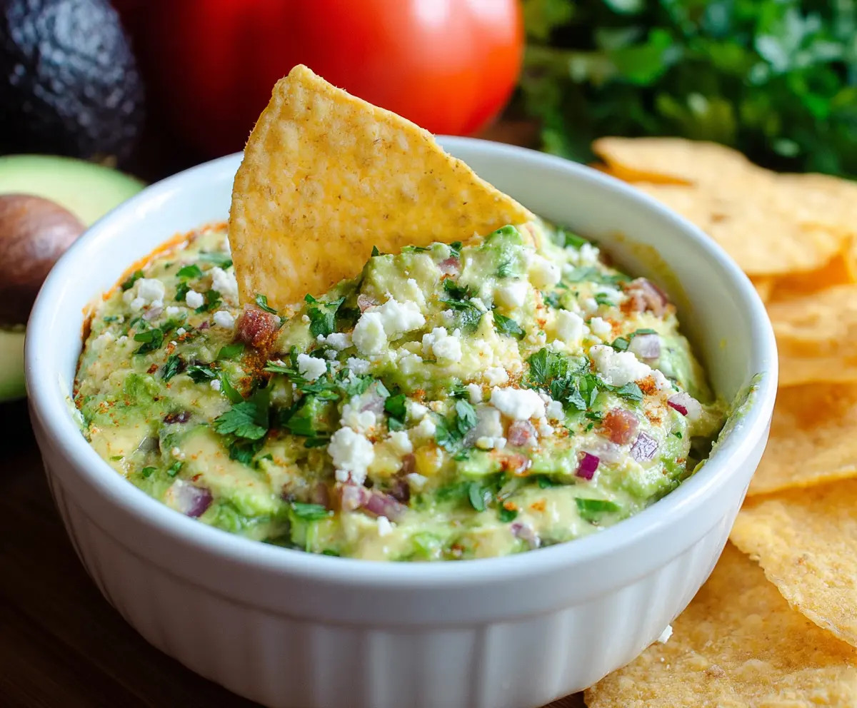 Creamy avocado crack dip served in a bowl with fresh ingredients.