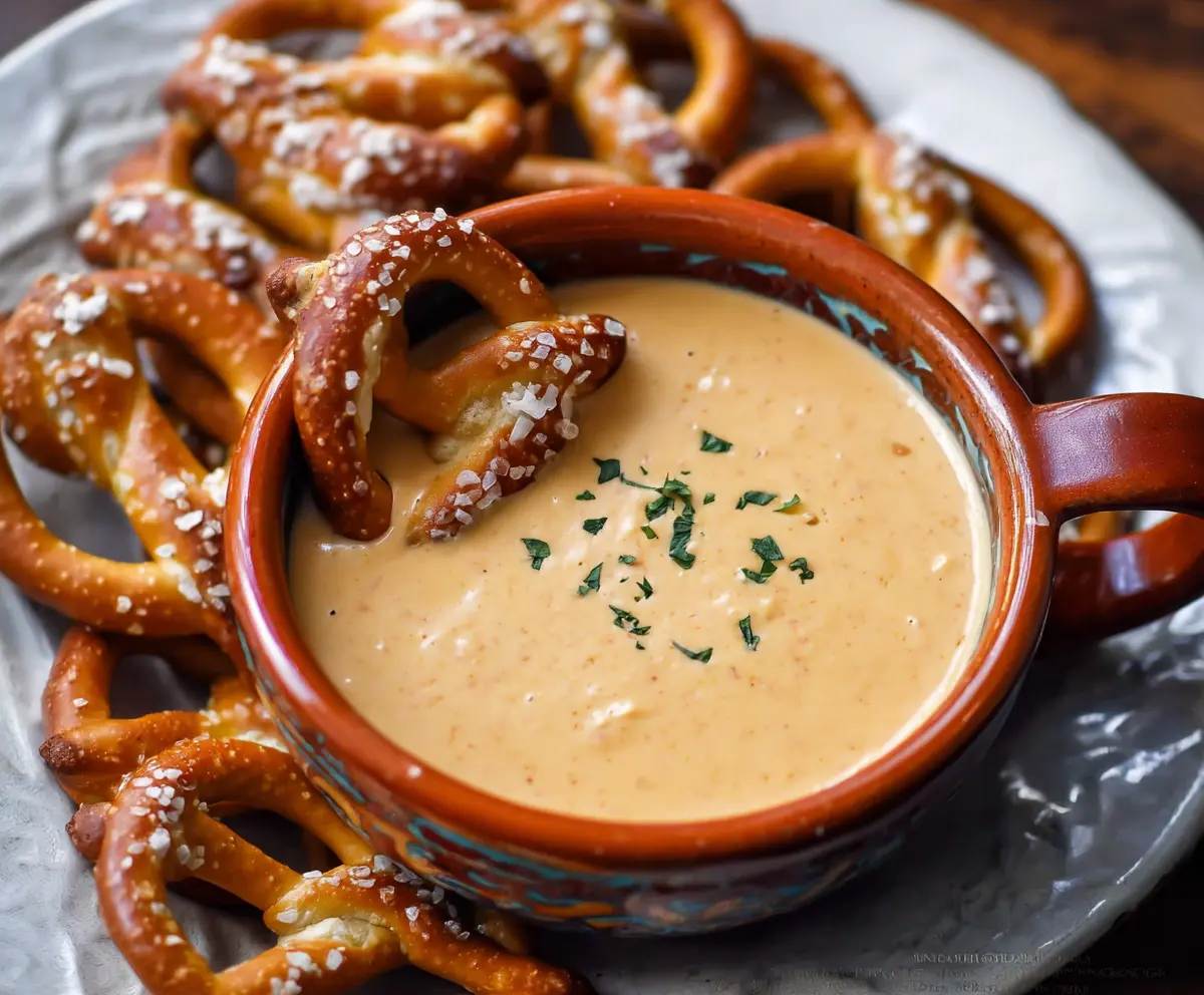 - Soft pretzels or pretzel chips, for serving