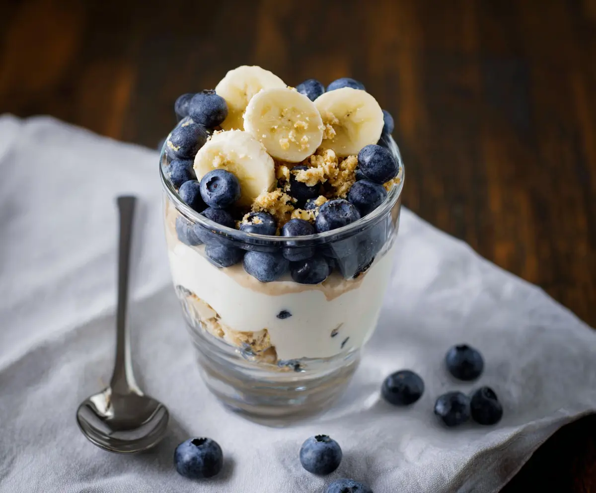 Start by washing the blueberries under cool water. Gently pat them dry with a paper towel. Next, slice the banana into thin, round pieces that will look lovely in your parfait.