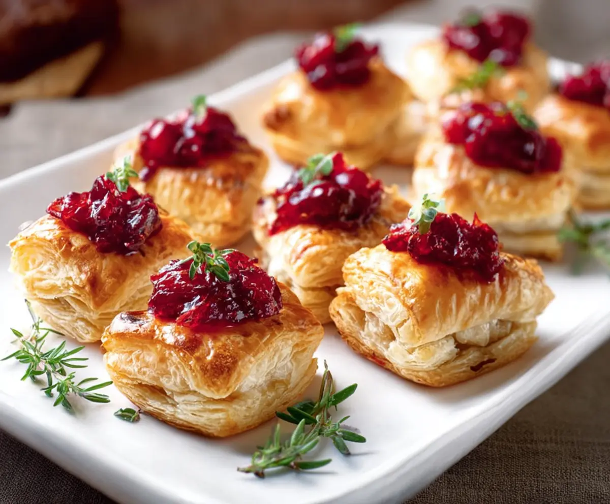 These Brie and Cranberry Puffs are flaky, cheesy, and bursting with flavor, making them an ideal choice for any gathering. Enjoy!