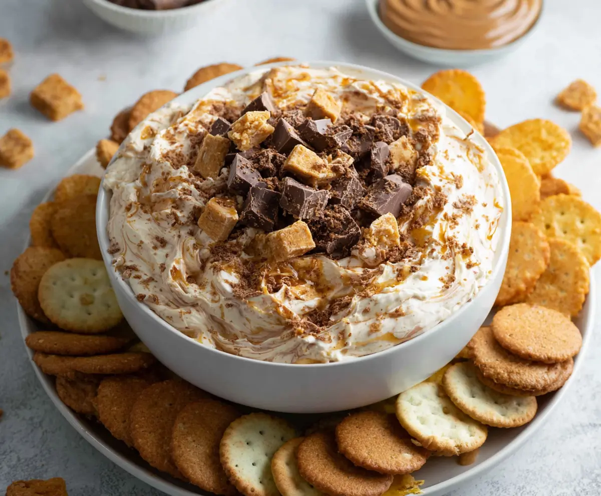 This Butterfinger Dip is a fun and tasty treat that mixes cream cheese, whipped topping, and crushed Butterfinger candy. It’s sweet, creamy, and perfect for sharing!