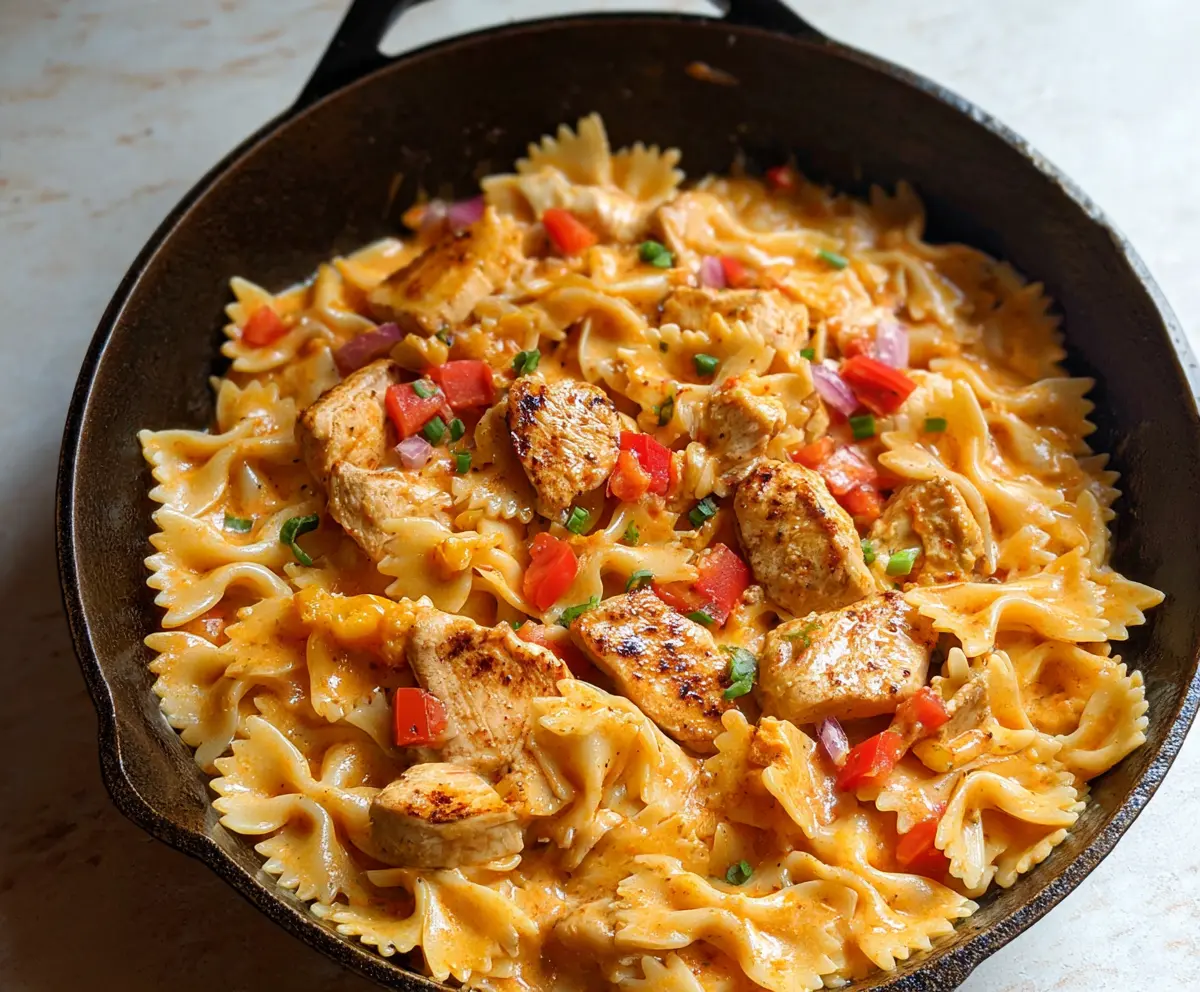 This Cajun Chicken Bowtie Pasta Skillet is a tasty one-pan meal that’s a breeze to make. With spicy chicken, colorful veggies, and bowtie pasta, it’s both filling and fun!