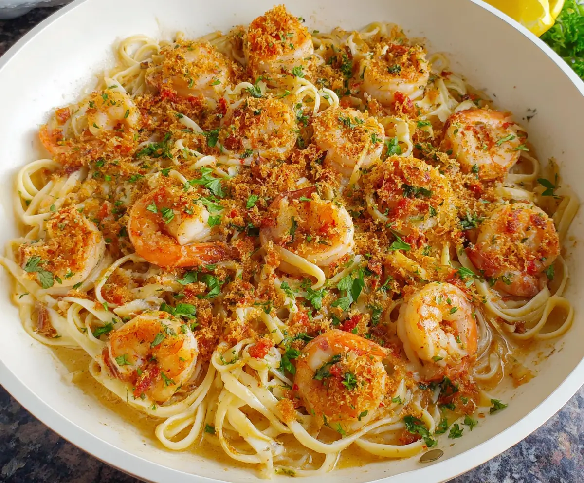 Plate the linguine and shrimp, topping it generously with the toasted breadcrumbs, fresh parsley, and a sprinkle of Parmesan cheese. If you like, add extra lemon wedges for a refreshing finish.