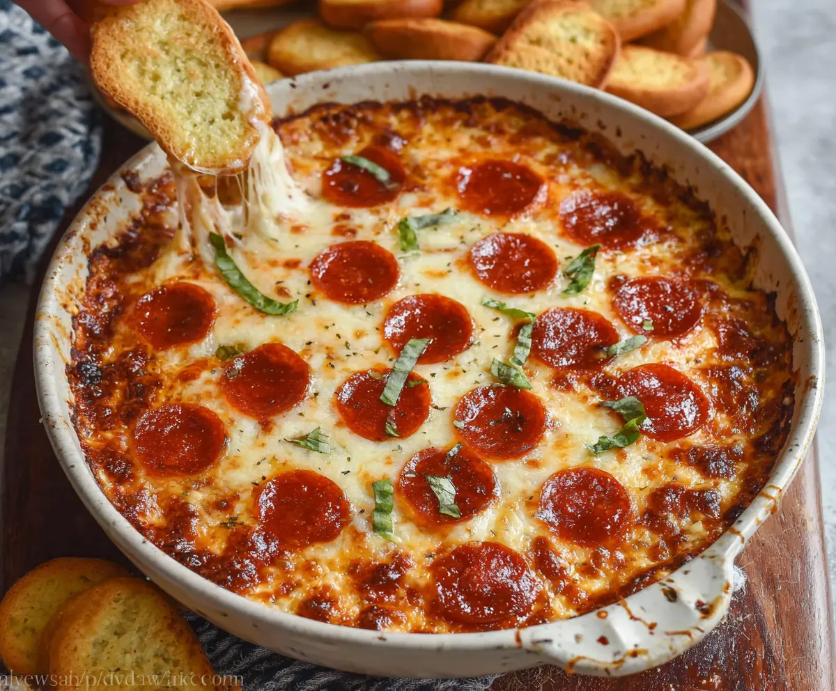 You just scoop it up with chips or breadsticks, and every bite is like a mini slice of pizza. Trust me, you’ll want to make this for your next party—or just for yourself! 😄