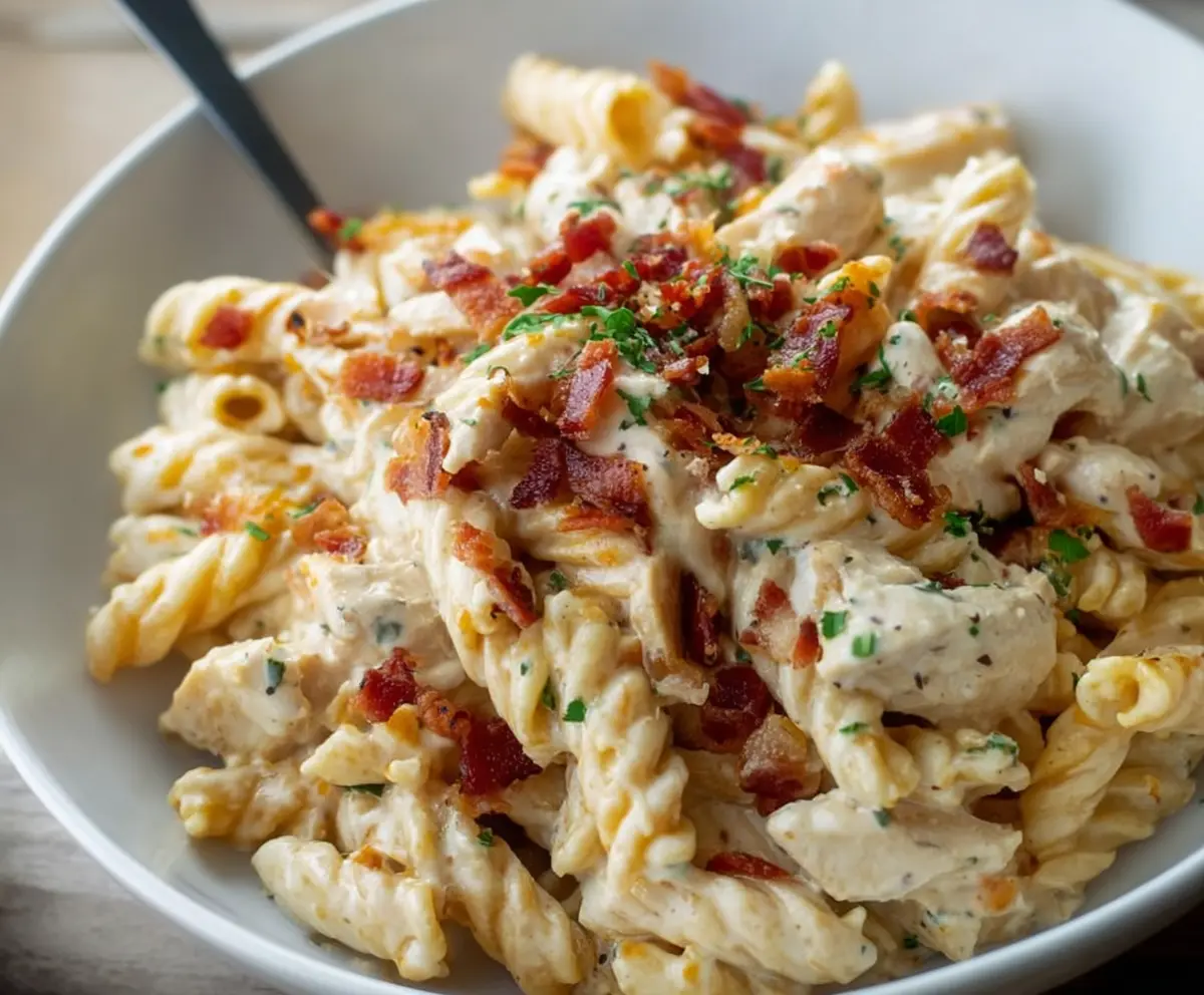 Enjoy your delightful Chicken Bacon Ranch Pasta, perfect for any occasion!