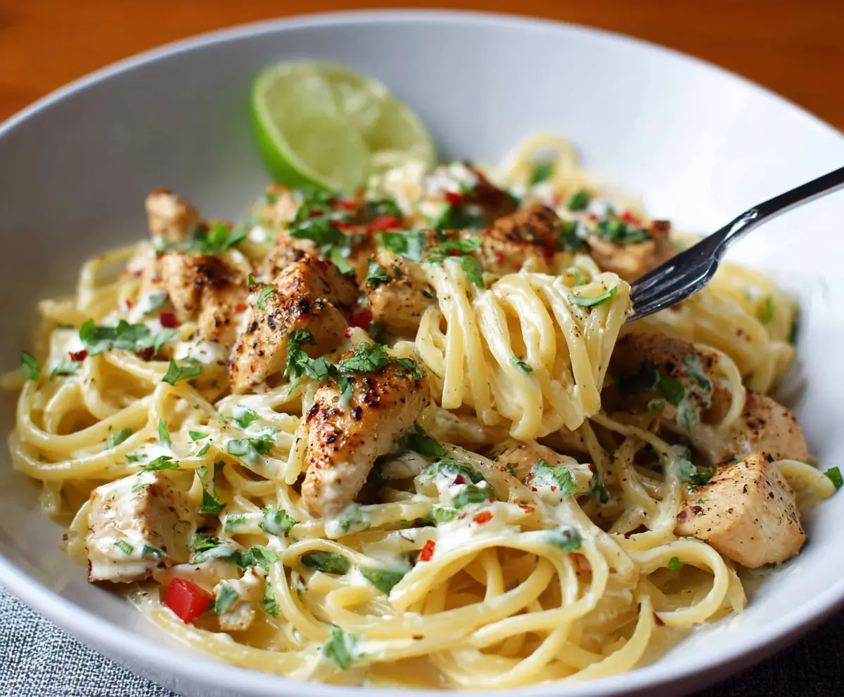 Plate the pasta hot, garnishing with more cilantro and lime wedges on the side. Enjoy the bright, zesty flavors of your Cilantro Lime Chicken Pasta!