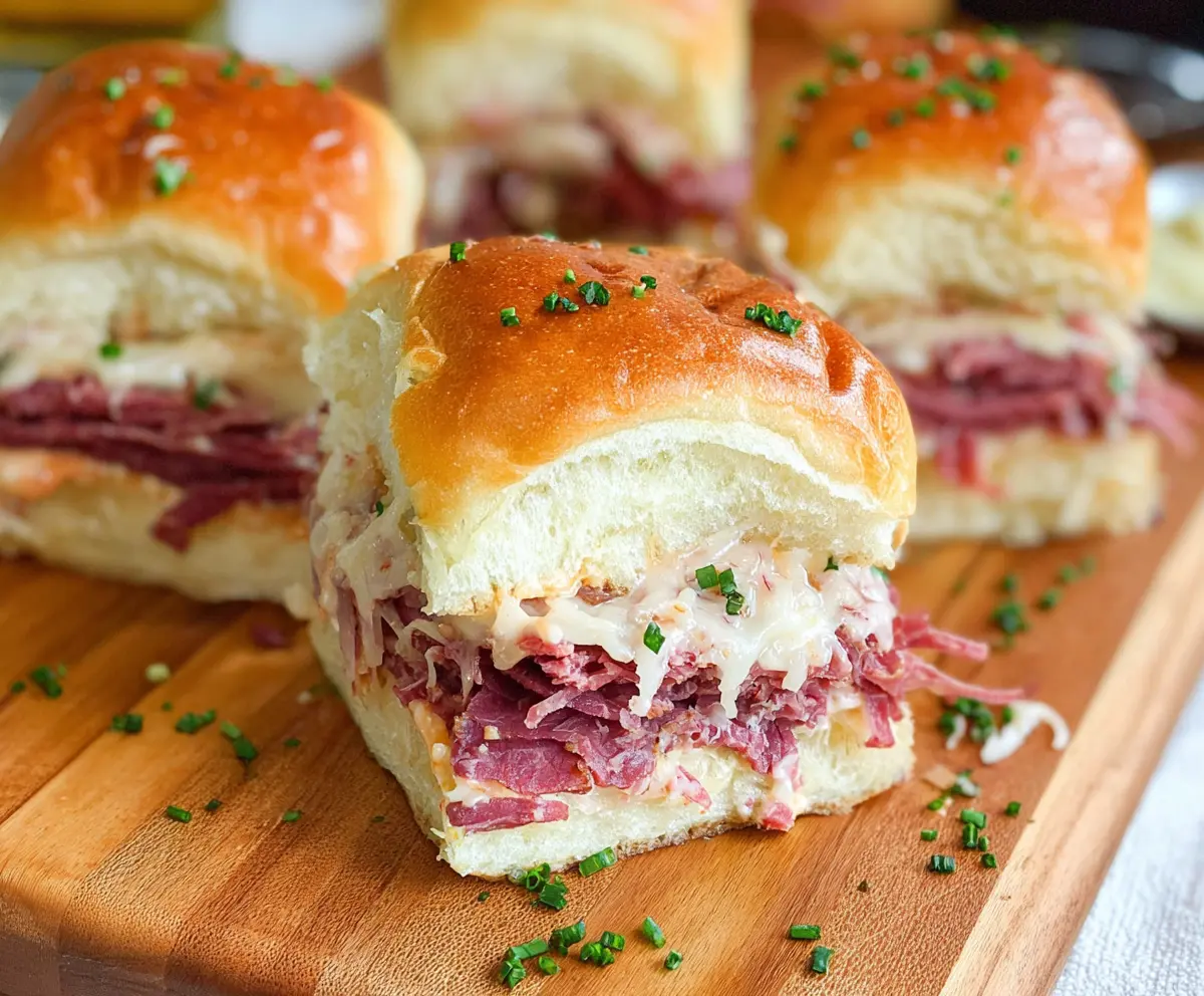 Once out of the oven, garnish your sliders with freshly chopped parsley or chives. Serve them warm and get ready to enjoy your delicious homemade corned beef sliders!