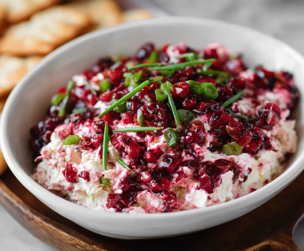 This tasty dip brings together tart cranberries and spicy jalapeños, mixed with creamy cheese for a delicious treat. Perfect for snacking or parties!