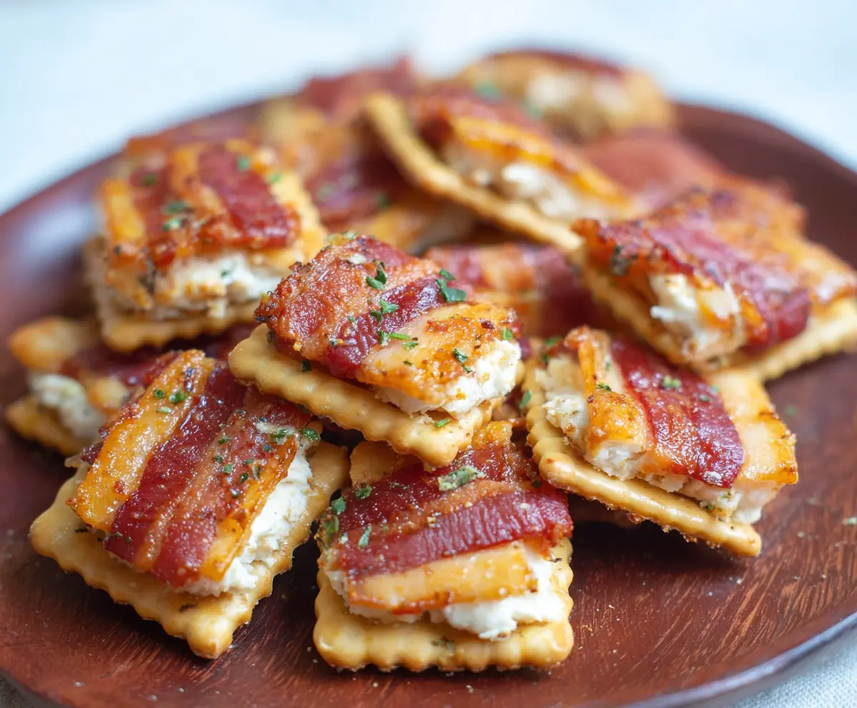 I love making these for my friends because they disappear faster than I can stack them! Just spread cream cheese on crackers, top with bacon, and enjoy—simple and fun!