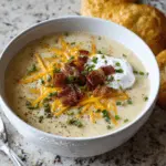 Now it’s time to add the good stuff! Stir in 1 cup of shredded mozzarella and ½ cup of grated Parmesan cheese. Mix gently until the cheeses are melted and the soup is smooth and creamy.