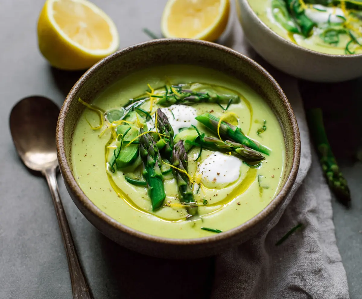 This creamy tahini and lemon-asparagus soup is like a warm hug in a bowl! It’s made with fresh asparagus, zesty lemon, and smooth tahini for a rich flavor.