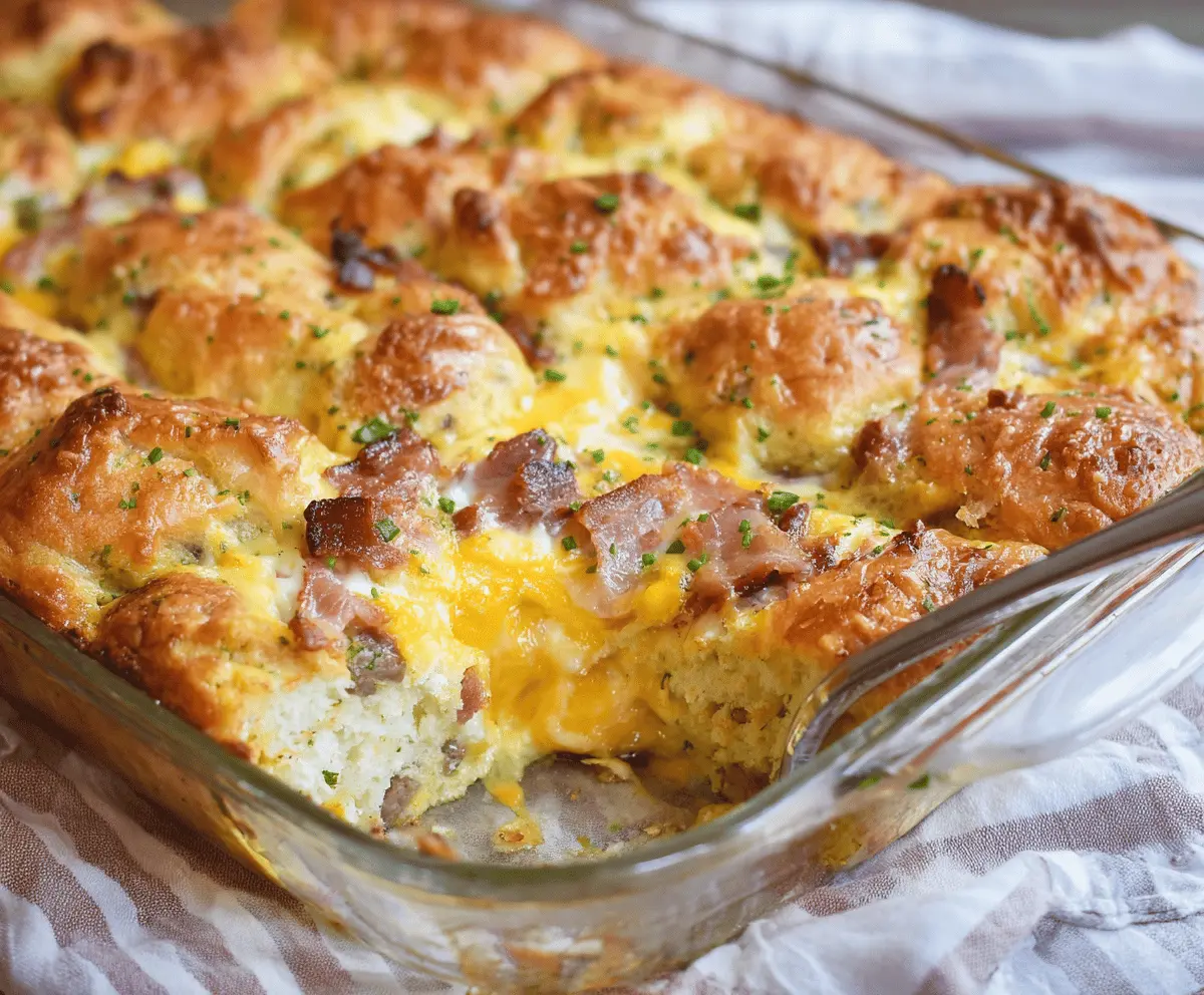 Once it’s done, take the casserole out of the oven and let it cool for a few minutes. This helps it set a bit more. After it cools slightly, slice it into squares and serve warm. Enjoy your delicious, flaky, cheesy breakfast casserole!
