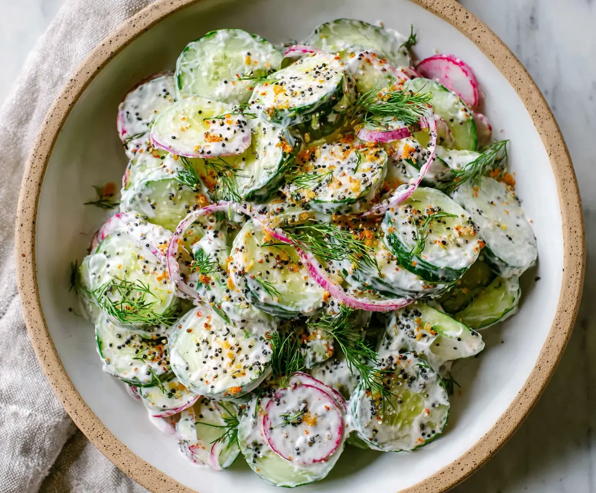 This Cucumber Everything Bagel Salad is fresh, crunchy, and bursting with flavor! It combines cool cucumbers with everything bagel seasoning for a fun twist.