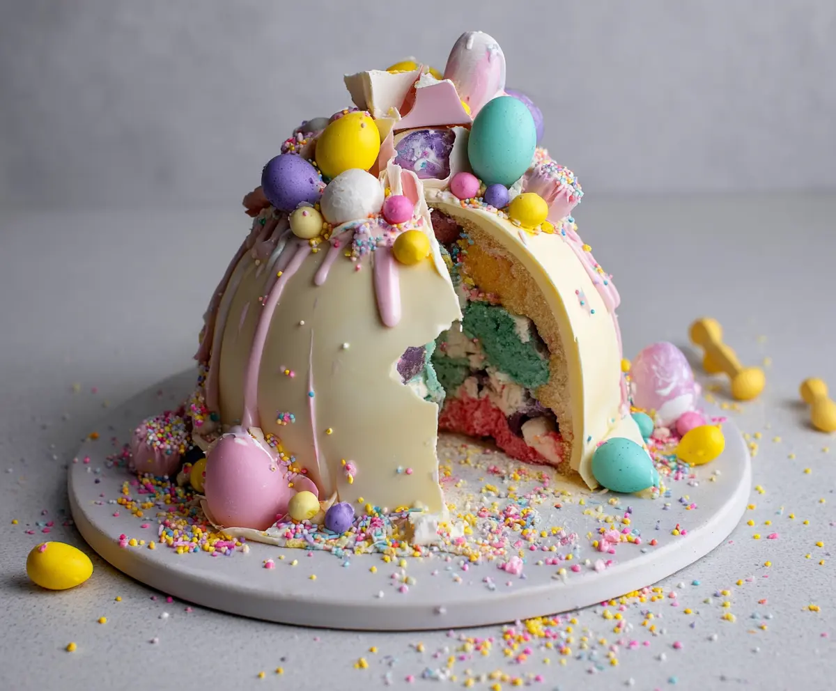 This fun Epic Easter Egg Smash Cake is a festive delight! It’s a moist chocolate cake filled with colorful candy eggs that burst open when you cut into it. Perfect for spring celebrations!
