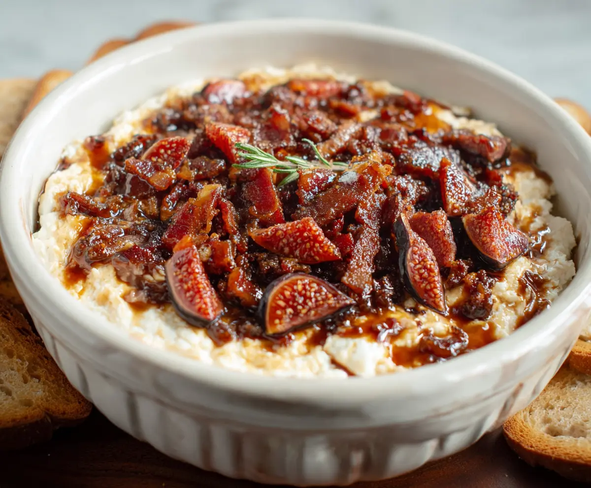 This Fig and Bacon Boursin Cheese Dip is a tasty combo of creamy cheese, sweet figs, and crispy bacon. It’s perfect for spreading on crackers or veggies at your next get-together!