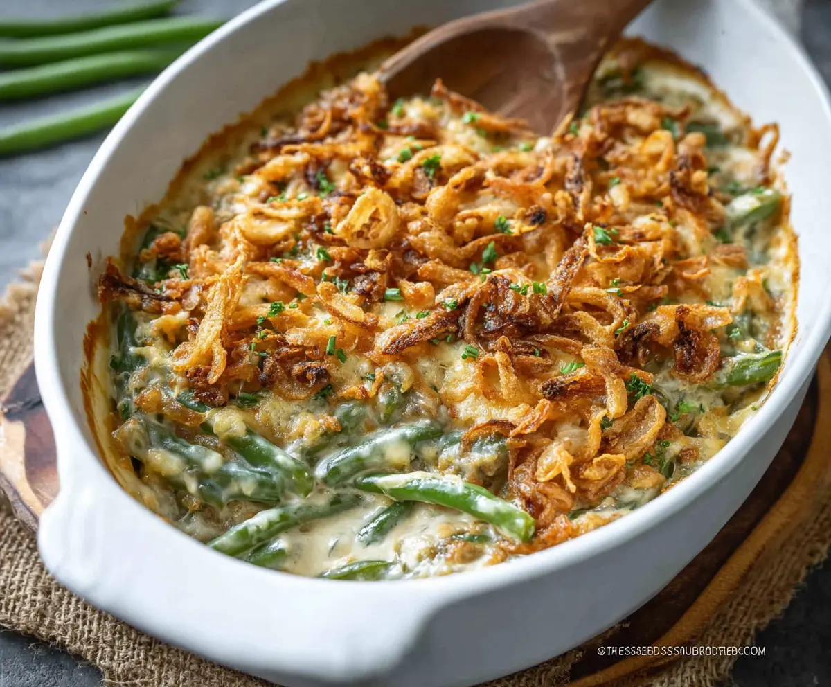 This Green Bean Casserole is a cozy dish with tender green beans, creamy sauce, and crunchy onion toppings. It’s a family favorite for any gathering!