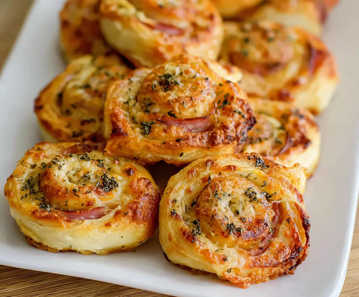 Delicious ham and cheese pinwheels fresh out of the oven, perfect for snacks or parties