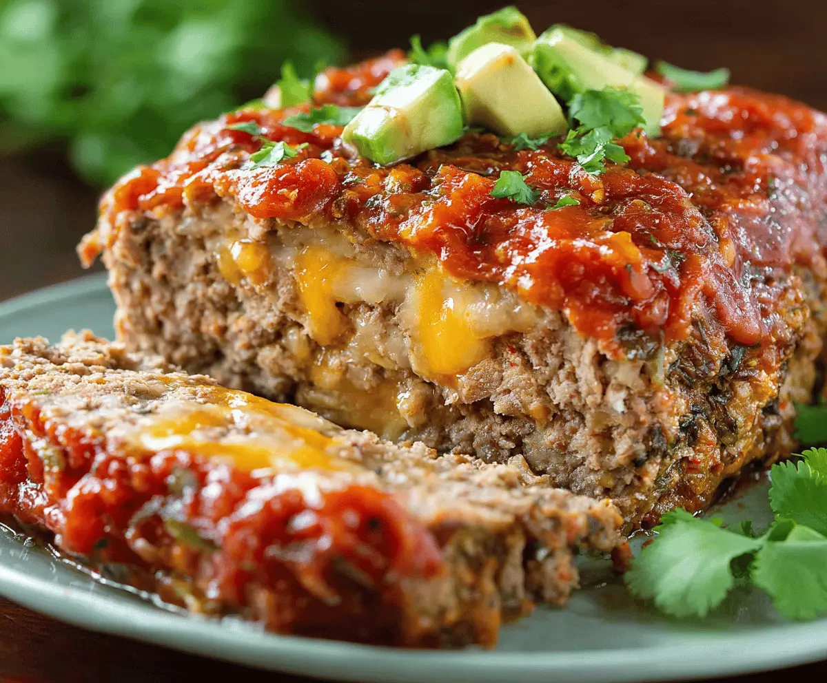 Slice the meatloaf and serve it warm. You can garnish it with fresh cilantro leaves and serve diced red onion and guacamole on the side for a little extra flair. Enjoy your hearty and flavorful Mexican Meatloaf!