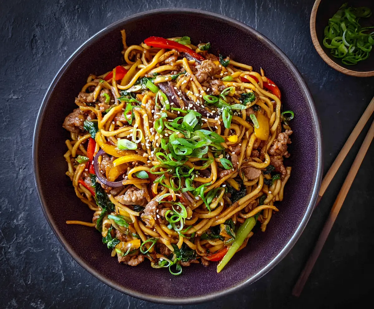 Pork Stir Fry Noodles are a quick and tasty dish filled with colorful veggies and tender pork. It’s like a party in a bowl! You can have it ready in no time.