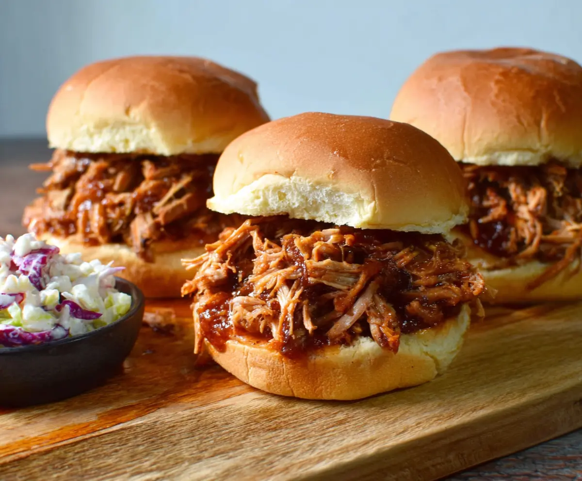 Enjoy your delicious, juicy pulled pork sandwiches with tangy coleslaw and smoky barbecue flavors!