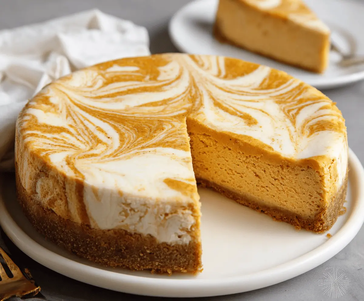 This Pumpkin Swirl Cheesecake is a tasty treat that combines creamy cheesecake with the warm flavors of pumpkin and spice. It’s perfect for autumn gatherings!