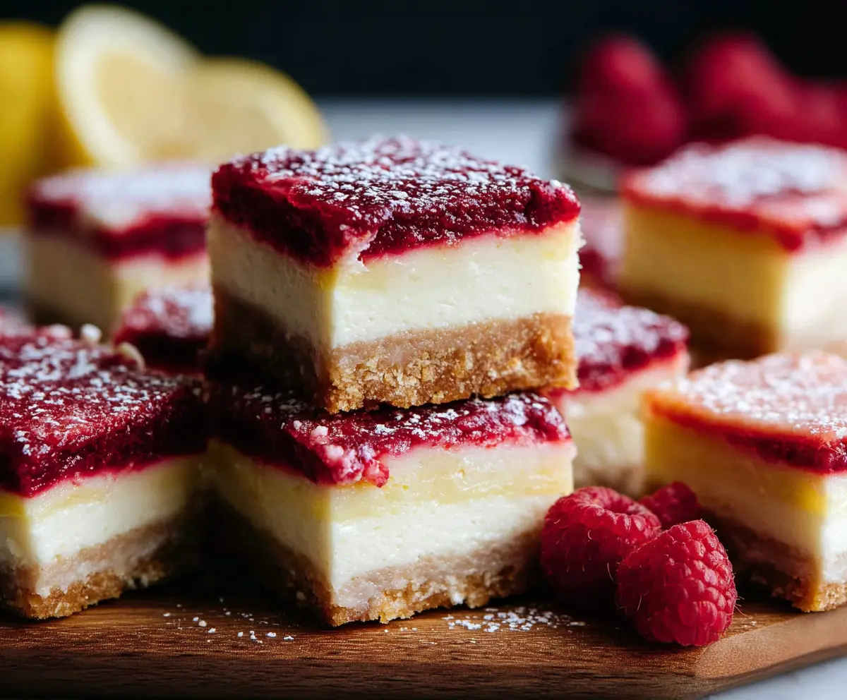These Raspberry Lemon Cheesecake Bars are a delightful treat! With creamy cheesecake, a zesty lemon flavor, and tangy raspberry swirls, they’re sure to brighten your day.