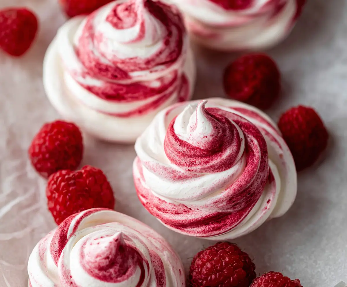 Now you can enjoy these delightful, light, and crispy raspberry swirled meringue cookies! Perfect for any occasion!