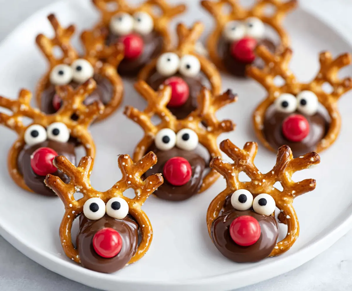 These fun Reindeer Pretzel Bites are a tasty treat that combines crunchy pretzels, creamy chocolate, and sweet candies. A perfect snack for the holidays!