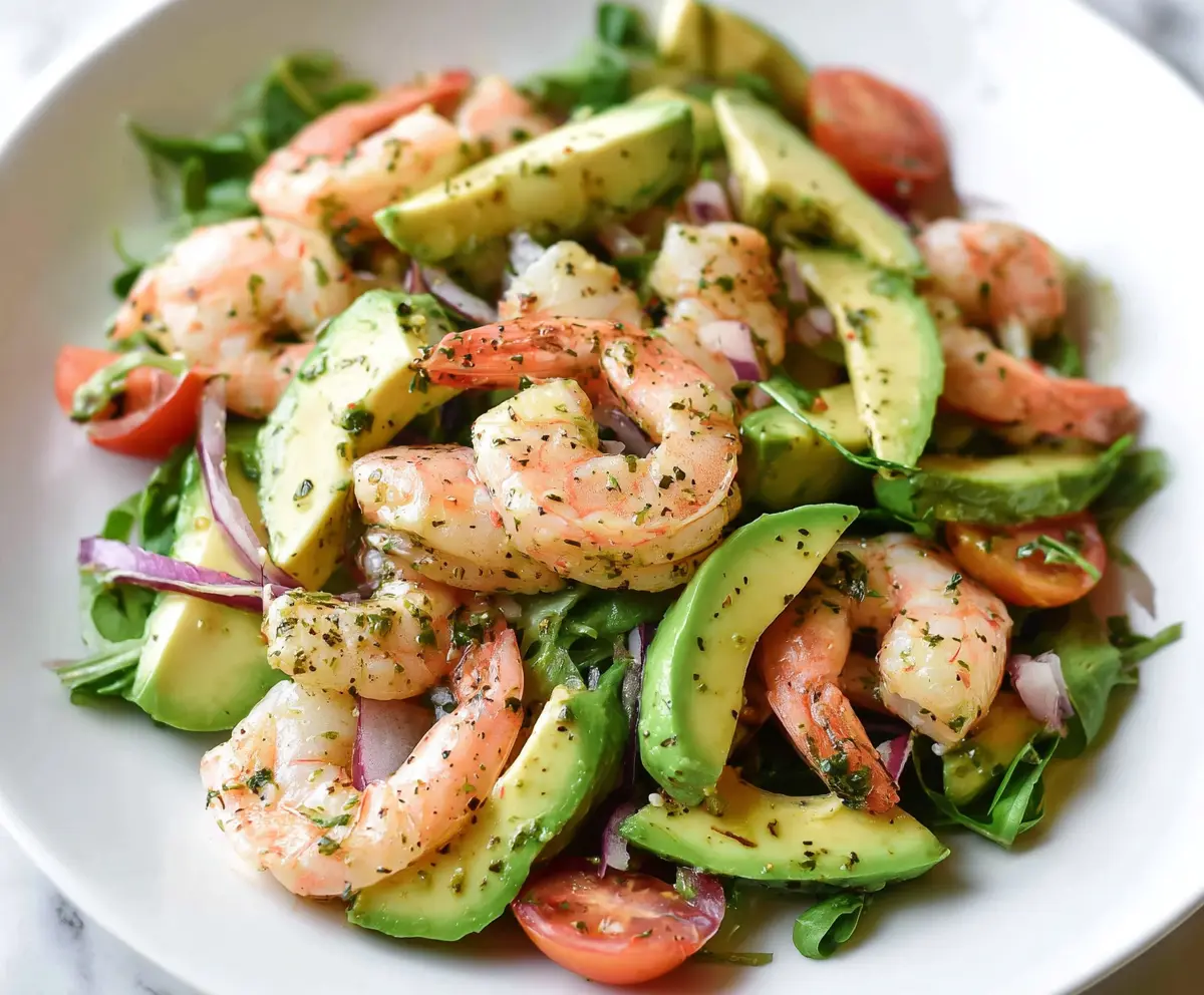 This bright and fresh shrimp and avocado salad is packed with flavor! Juicy shrimp pair perfectly with creamy avocado and crisp veggies for a delightful dish.