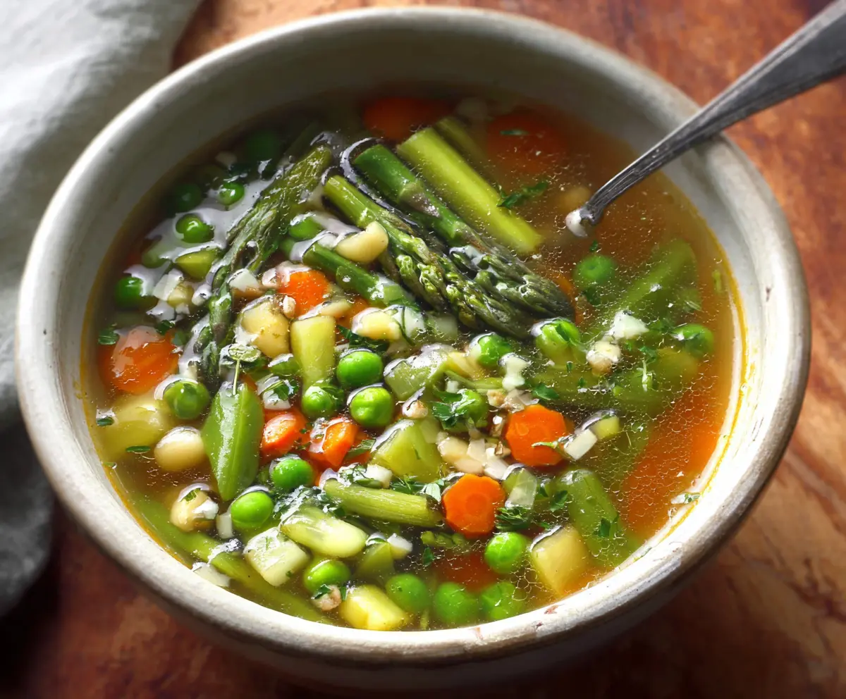 Making this soup always cheers me up. I love how easy it is to toss in whatever spring veggies I have on hand. Grab a cozy bowl and enjoy every spoonful! 🥣