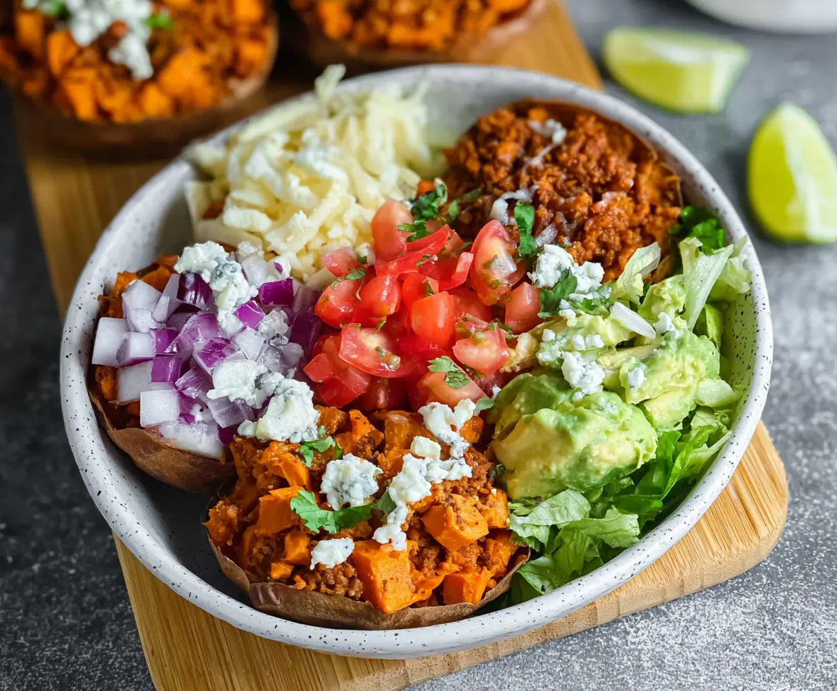 Sweet Potato Taco Bowls are a fun and colorful meal! With roasted sweet potatoes, black beans, and fresh veggies, each bite is a tasty surprise.
