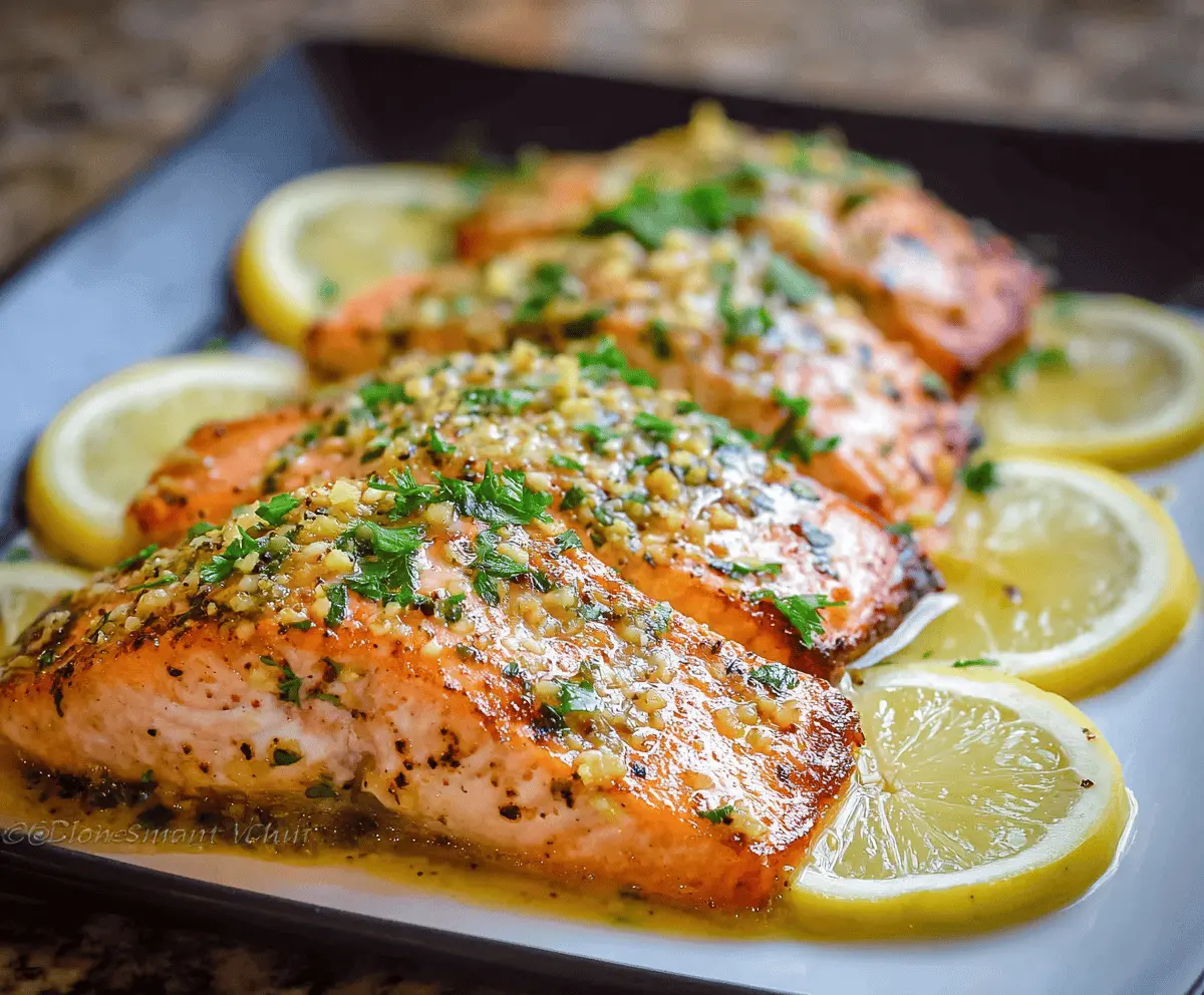 Sprinkle the cooked salmon with freshly chopped parsley or thyme before serving. Enjoy your Zesty Lemon Dijon Salmon with your choice of sides, like roasted vegetables or a fresh salad for a complete meal!